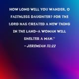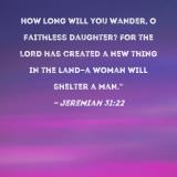 How long will you wander, O faithless daughter? For the LORD has created a new thing in the land--a woman will shelter a man."