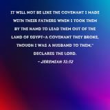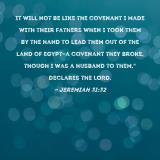 It will not be like the covenant I made with their fathers when I took them by the hand to lead them out of the land of Egypt--a covenant they broke, though I was a husband to them," declares the LORD.