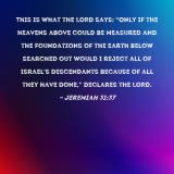 This is what the LORD says: "Only if the heavens above could be measured and the foundations of the earth below searched out would I reject all of Israel's descendants because of all they have done," declares the LORD.