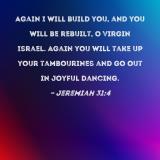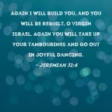 Again I will build you, and you will be rebuilt, O Virgin Israel. Again you will take up your tambourines and go out in joyful dancing.