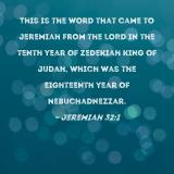 This is the word that came to Jeremiah from the LORD in the tenth year of Zedekiah king of Judah, which was the eighteenth year of Nebuchadnezzar.