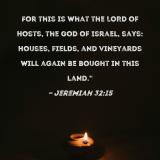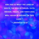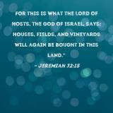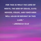 For this is what the LORD of Hosts, the God of Israel, says: Houses, fields, and vineyards will again be bought in this land."