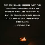 They came in and possessed it, but they did not obey Your voice or walk in Your law. They failed to perform all that You commanded them to do, and so You have brought upon them all this disaster.