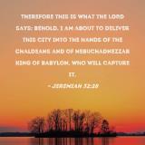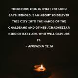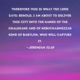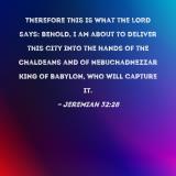 Therefore this is what the LORD says: Behold, I am about to deliver this city into the hands of the Chaldeans and of Nebuchadnezzar king of Babylon, who will capture it.