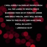I will surely gather My people from all the lands to which I have banished them in My furious anger and great wrath, and I will return them to this place and make them dwell in safety.