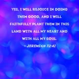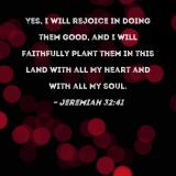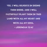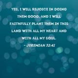 Yes, I will rejoice in doing them good, and I will faithfully plant them in this land with all My heart and with all My soul.