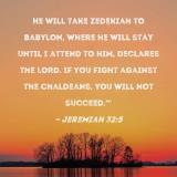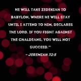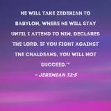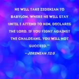 He will take Zedekiah to Babylon, where he will stay until I attend to him, declares the LORD. If you fight against the Chaldeans, you will not succeed.'"