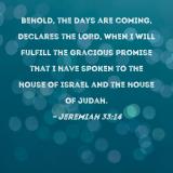 Behold, the days are coming, declares the LORD, when I will fulfill the gracious promise that I have spoken to the house of Israel and the house of Judah.