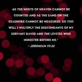 As the hosts of heaven cannot be counted and as the sand on the seashore cannot be measured, so too will I multiply the descendants of My servant David and the Levites who minister before Me."