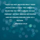 "Have you not noticed what these people are saying: 'The LORD has rejected the two families He had chosen'? So they despise My people and no longer regard them as a nation.