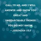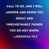 Call to Me, and I will answer and show you great and unsearchable things you do not know.