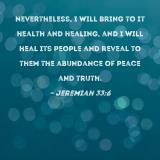 Nevertheless, I will bring to it health and healing, and I will heal its people and reveal to them the abundance of peace and truth.