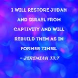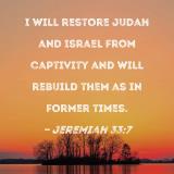I will restore Judah and Israel from captivity and will rebuild them as in former times.