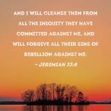 And I will cleanse them from all the iniquity they have committed against Me, and will forgive all their sins of rebellion against Me.