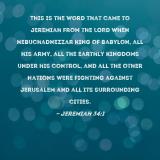 Pictures and Artwork This is the word that came to Jeremiah from the LORD when Nebuchadnezzar king of Babylon, all his army, all the earthly kingdoms under his control, and all the other nations were fighting against Jerusalem and all its surrounding cities. |