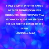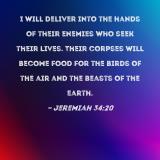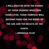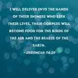 I will deliver into the hands of their enemies who seek their lives. Their corpses will become food for the birds of the air and the beasts of the earth.