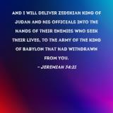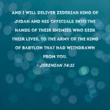 And I will deliver Zedekiah king of Judah and his officials into the hands of their enemies who seek their lives, to the army of the king of Babylon that had withdrawn from you.