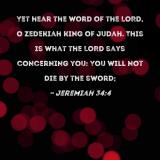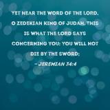 Yet hear the word of the LORD, O Zedekiah king of Judah. This is what the LORD says concerning you: You will not die by the sword;