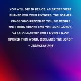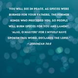 you will die in peace. As spices were burned for your fathers, the former kings who preceded you, so people will burn spices for you and lament, 'Alas, O master!' For I Myself have spoken this word, declares the LORD."