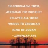 In Jerusalem, then, Jeremiah the prophet relayed all these words to Zedekiah king of Judah