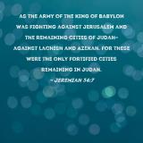 as the army of the king of Babylon was fighting against Jerusalem and the remaining cities of Judah--against Lachish and Azekah. For these were the only fortified cities remaining in Judah.