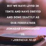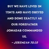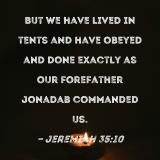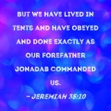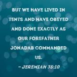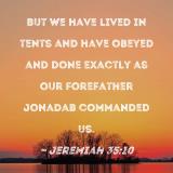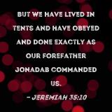 But we have lived in tents and have obeyed and done exactly as our forefather Jonadab commanded us.