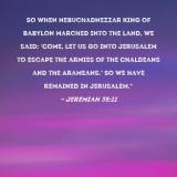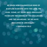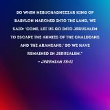So when Nebuchadnezzar king of Babylon marched into the land, we said: 'Come, let us go into Jerusalem to escape the armies of the Chaldeans and the Arameans.' So we have remained in Jerusalem."
