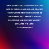 "This is what the LORD of Hosts, the God of Israel, says: Go and tell the men of Judah and the residents of Jerusalem: 'Will you not accept discipline and obey My words?' declares the LORD.