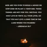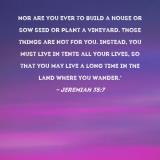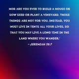 Nor are you ever to build a house or sow seed or plant a vineyard. Those things are not for you. Instead, you must live in tents all your lives, so that you may live a long time in the land where you wander.'