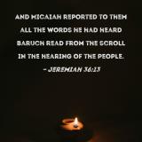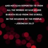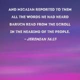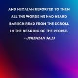 And Micaiah reported to them all the words he had heard Baruch read from the scroll in the hearing of the people.