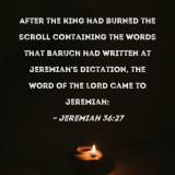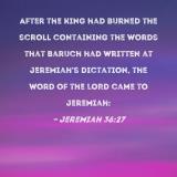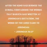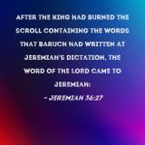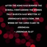 After the king had burned the scroll containing the words that Baruch had written at Jeremiah's dictation, the word of the LORD came to Jeremiah: