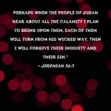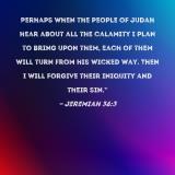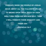 Perhaps when the people of Judah hear about all the calamity I plan to bring upon them, each of them will turn from his wicked way. Then I will forgive their iniquity and their sin."