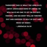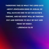 Therefore this is what the LORD says about Jehoiakim king of Judah: He will have no one to sit on David's throne, and his body will be thrown out and exposed to heat by day and frost by night.