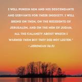 I will punish him and his descendants and servants for their iniquity. I will bring on them, on the residents of Jerusalem, and on the men of Judah, all the calamity about which I warned them but they did not listen."