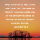 So Baruch son of Neriah did everything that Jeremiah the prophet had commanded him. In the house of the LORD he read the words of the LORD from the scroll.