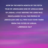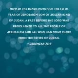 Now in the ninth month of the fifth year of Jehoiakim son of Josiah king of Judah, a fast before the LORD was proclaimed to all the people of Jerusalem and all who had come there from the cities of Judah.