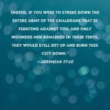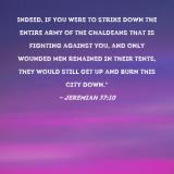 Indeed, if you were to strike down the entire army of the Chaldeans that is fighting against you, and only wounded men remained in their tents, they would still get up and burn this city down."