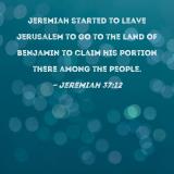 Jeremiah started to leave Jerusalem to go to the land of Benjamin to claim his portion there among the people.
