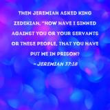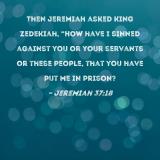 Then Jeremiah asked King Zedekiah, "How have I sinned against you or your servants or these people, that you have put me in prison?