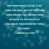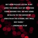 But now please listen, O my lord the king. May my petition come before you. Do not send me back to the house of Jonathan the scribe, or I will die there."