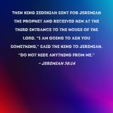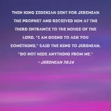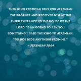 Then King Zedekiah sent for Jeremiah the prophet and received him at the third entrance to the house of the LORD. "I am going to ask you something," said the king to Jeremiah. "Do not hide anything from me."