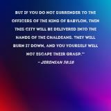 But if you do not surrender to the officers of the king of Babylon, then this city will be delivered into the hands of the Chaldeans. They will burn it down, and you yourself will not escape their grasp.'"