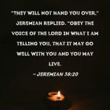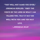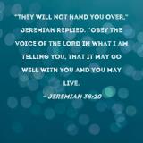 "They will not hand you over," Jeremiah replied. "Obey the voice of the LORD in what I am telling you, that it may go well with you and you may live.
