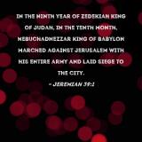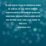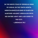 In the ninth year of Zedekiah king of Judah, in the tenth month, Nebuchadnezzar king of Babylon marched against Jerusalem with his entire army and laid siege to the city.