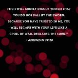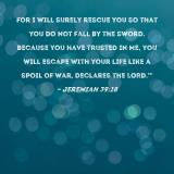 For I will surely rescue you so that you do not fall by the sword. Because you have trusted in Me, you will escape with your life like a spoil of war, declares the LORD.'"
