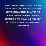 When Zedekiah king of Judah and all the soldiers saw them, they fled. They left the city at night by way of the king's garden, through the gate between the two walls, and they went out along the route to the Arabah.