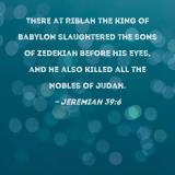 There at Riblah the king of Babylon slaughtered the sons of Zedekiah before his eyes, and he also killed all the nobles of Judah.
