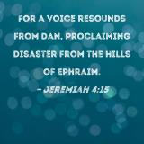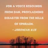 For a voice resounds from Dan, proclaiming disaster from the hills of Ephraim.