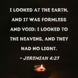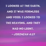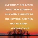 I looked at the earth, and it was formless and void; I looked to the heavens, and they had no light.