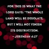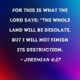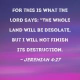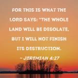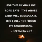 For this is what the LORD says: "The whole land will be desolate, but I will not finish its destruction.